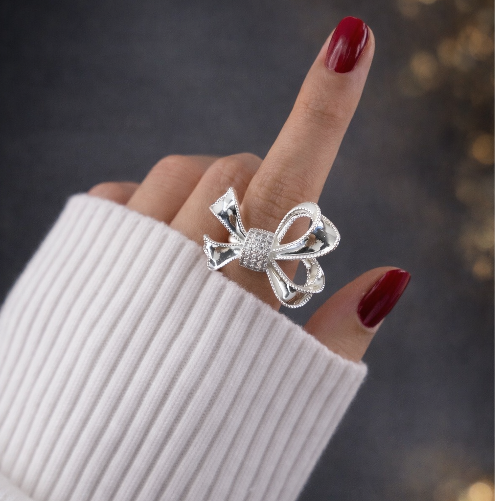 طراحی پاپیونیِ خاص با نگین کاری درخشان، این انگشتر را به یک انتخاب چشمگیر و ظریف تبدیل کرده است.